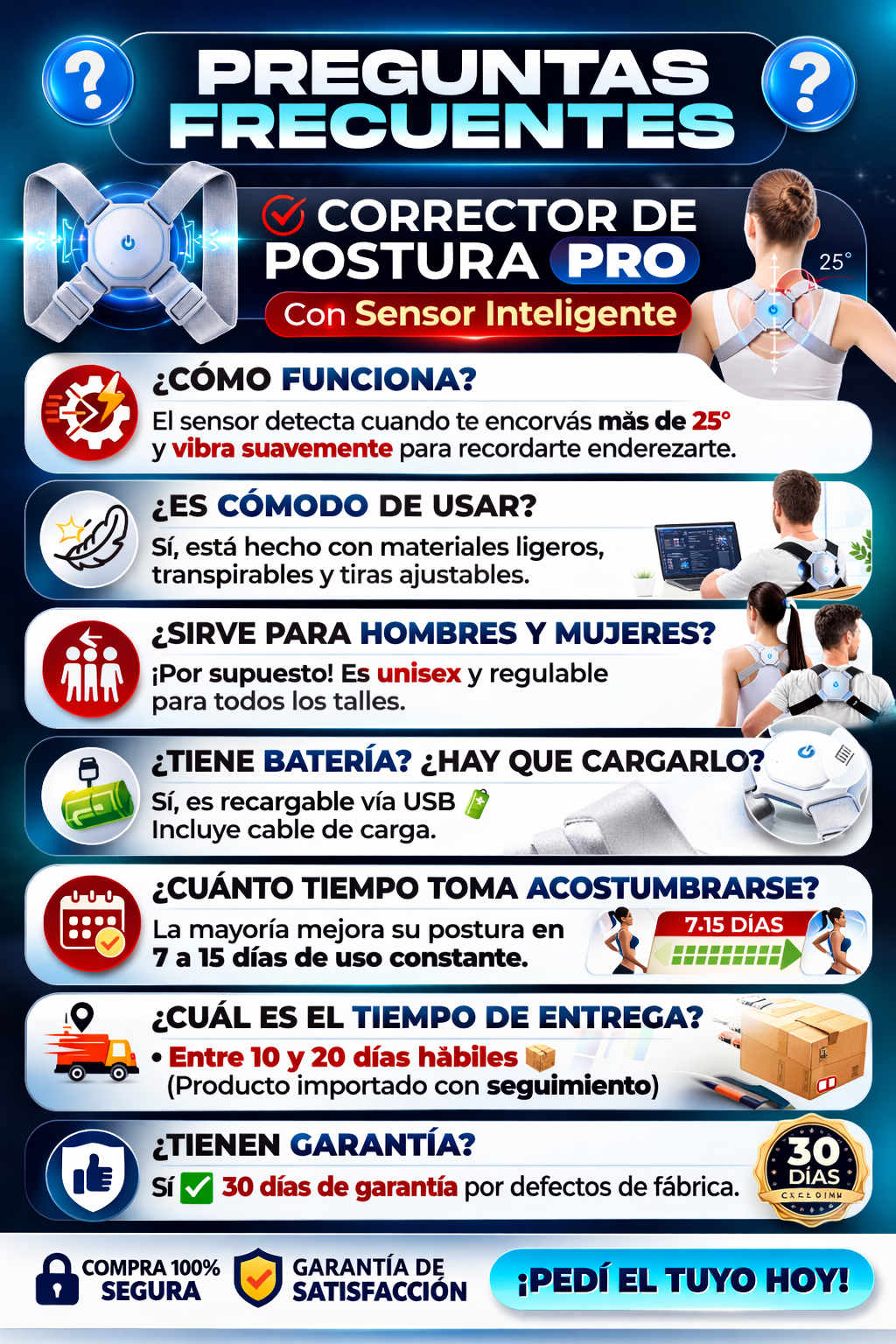 Si por alguna razón, el producto se encuentra dañado o no funciona, puede comunicarse fácil y rápidamente con nuestro servicio de atención al cliente para obtener un cambio fácil.