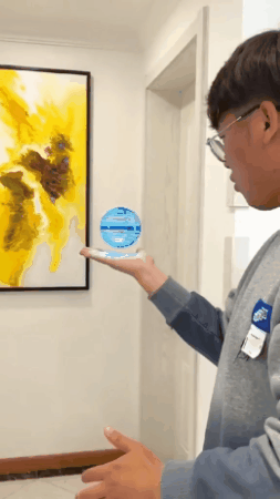 Las esferas detectan tus manos y objetos cercanos mediante un sensor inferior. Cuando la apoyás en la palma y la encendés, se eleva sola y cambia de dirección según el movimiento que hagas.